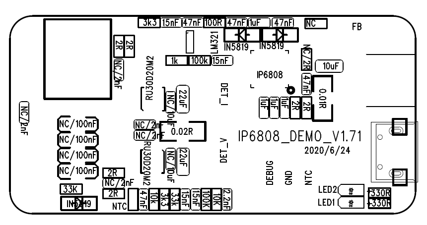 英集芯IP6808无线充电电路图(原厂DEMO设计版本号:IP6808_DEMO_V1.71)之Bottom图示: